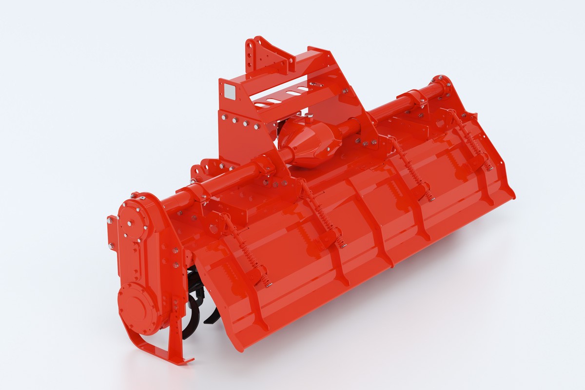 1GQ旋耕機配套動力50-120馬力,特殊設(shè)計的旋耕刀具有穩(wěn)心大、碎土碎茬埋茬性能好,作業(yè)阻力小、耐磨,旋耕刀按螺旋線對稱排列,作業(yè)中保持整機穩(wěn)定平衡。在不同工作條件下選配不同刀軸可得到良好的作業(yè)時效,刀軸刀盤采用圓盤式設(shè)計,具有良好的抗纏草能力;側(cè)傳動箱采用整體箱體設(shè)計,保證側(cè)箱齒輪傳動更加可靠;